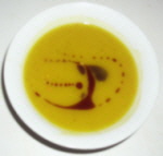 Vor dem Servieren noch etwas Kürbiskernöl in die Suppe geben.